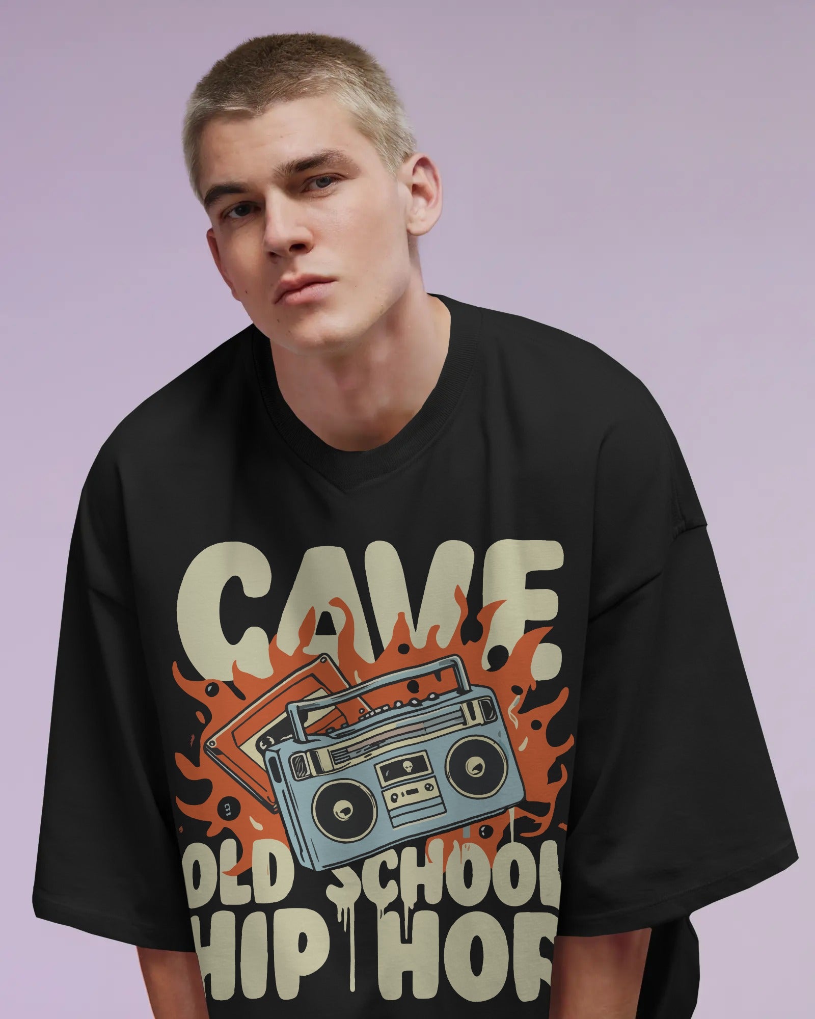 CAVE Old School Hip Hop Oversized T-Shirt – Retro Boombox Graphic Tee for Men & Women